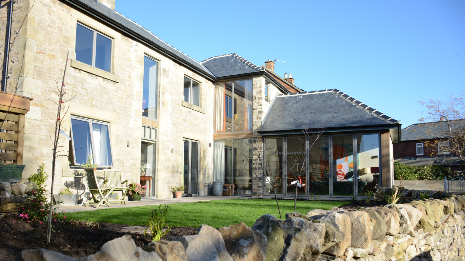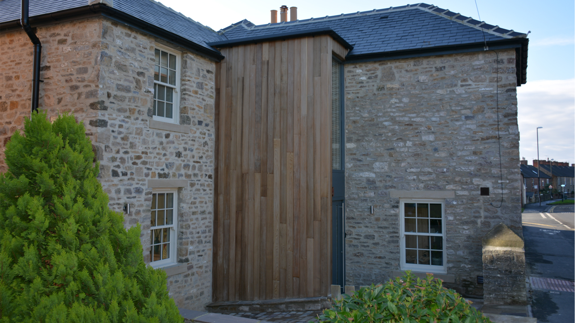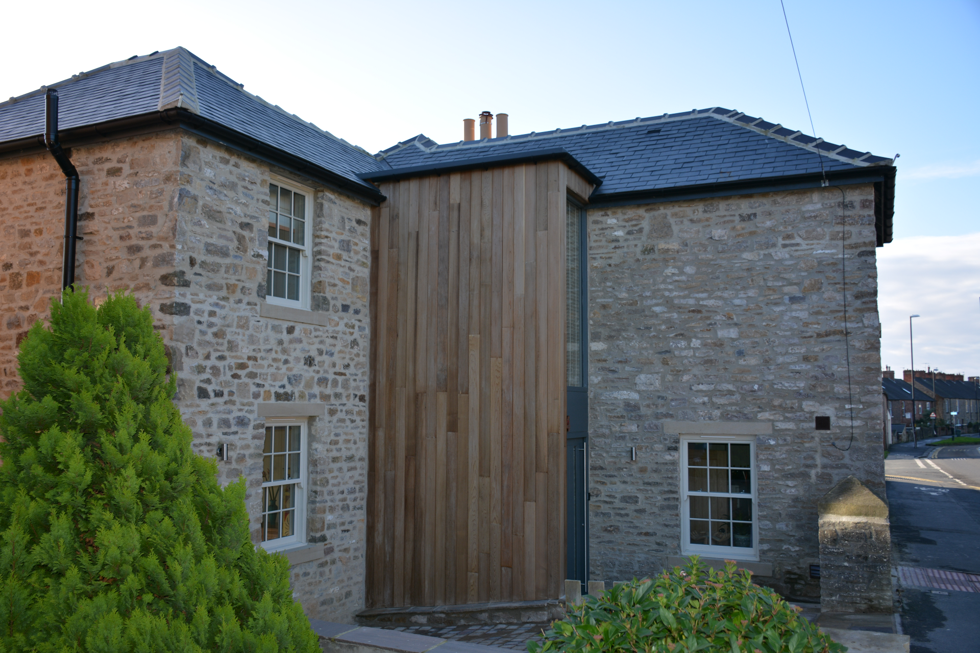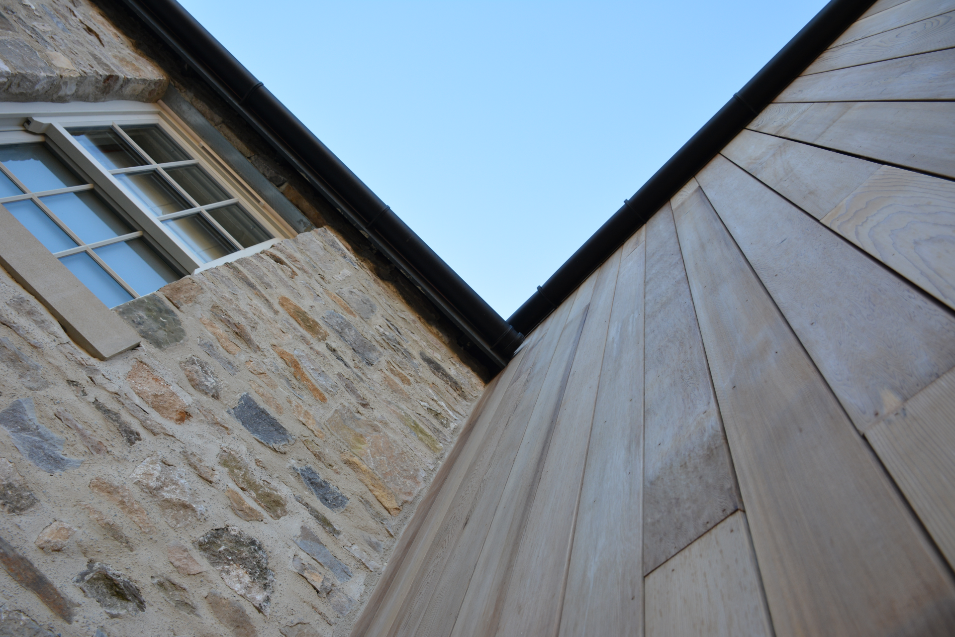 A two-storey extension was added to provide much-needed space, with a modern cedar-clad link creating a clear architectural junction between old and new. Internally, the layout opens up into generous living areas, with full access and views onto the surrounding garden —creating a strong sense of connection between inside and out.