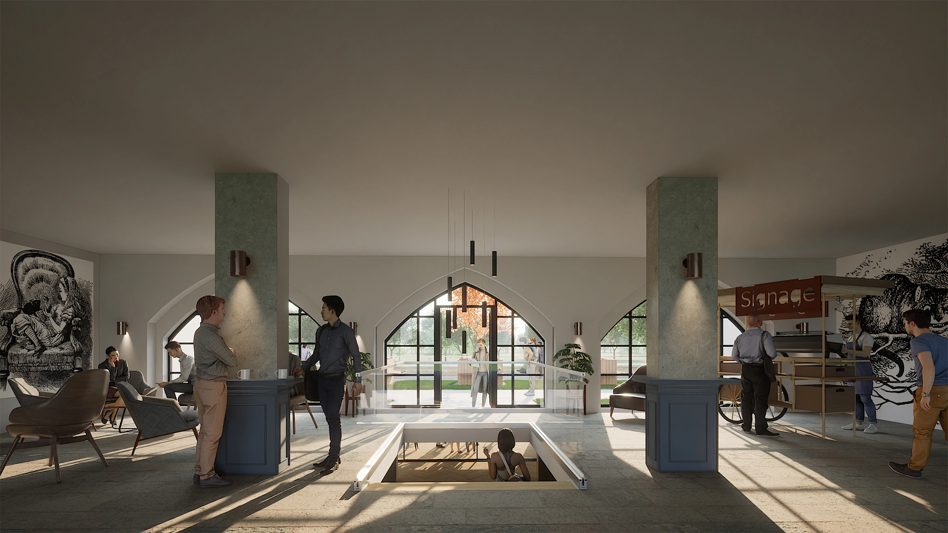 To help build momentum and public engagement, we created initial floor plans and rendered images that explored the building’s potential — highlighting opportunities to restore and repurpose the historic structure while making it accessible and relevant for modern use.